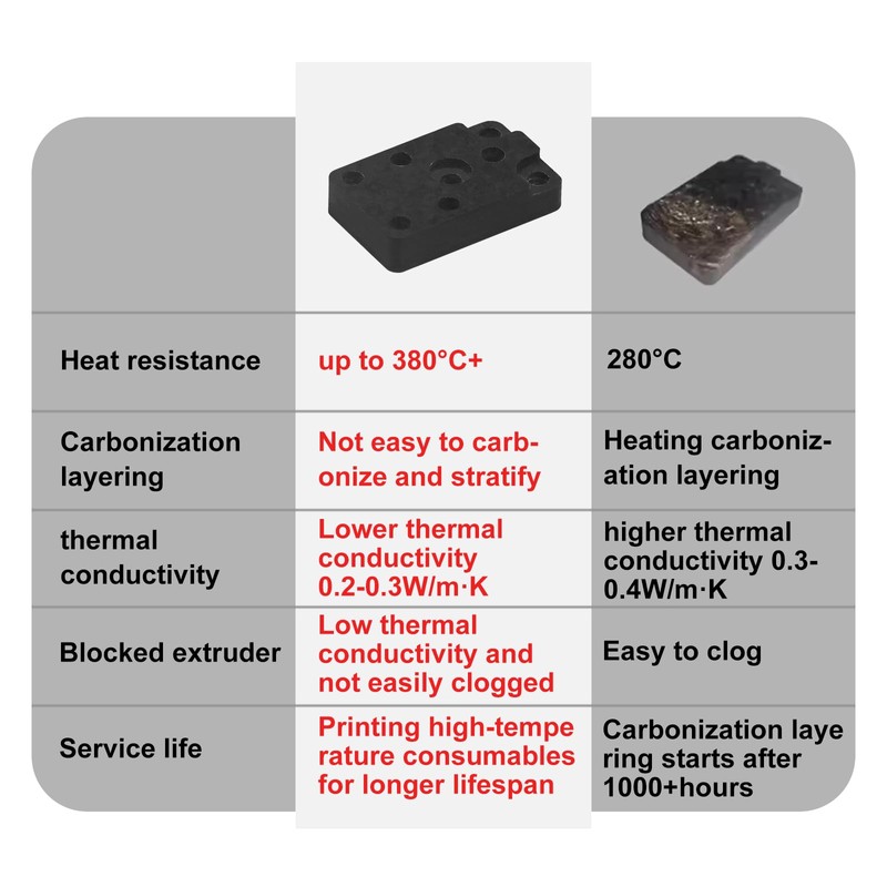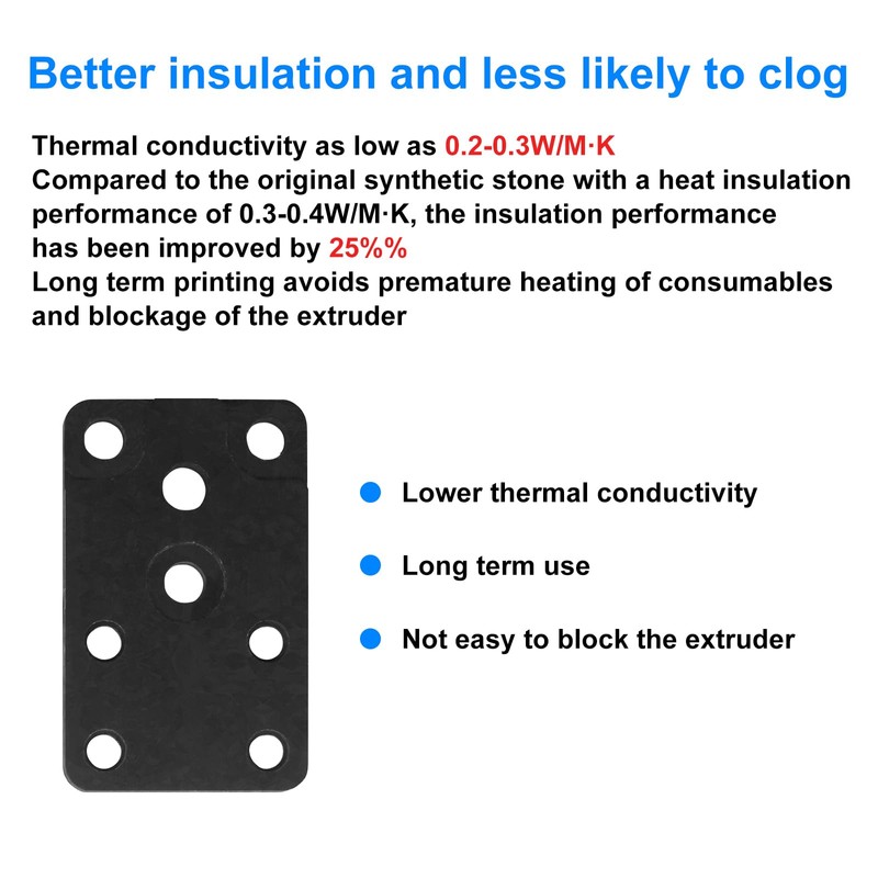 - High-Efficiency Heat Insulation & Clog Resistance:Crafted from high-temperature-resistant composite material (withstands 380°C peak / 280°C continuous), featuring ultra-low thermal conductivity of 0.2-0.3W/m·K (25% better insulation than original synthetic stone). Reduces heat loss and minimizes nozzle clogging for more stable printing.