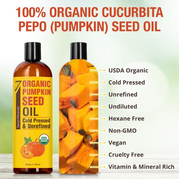 Seven Minerals NEW Pumpkin Seed Oil for Hair Growth, Face, & Body - Big 16oz Bottle - USDA Organic, Cold-Pressed, & Hexane Free - Lightweight, Non-Greasy, & Deeply Moisturizing for Scalp, Skin, & Hair