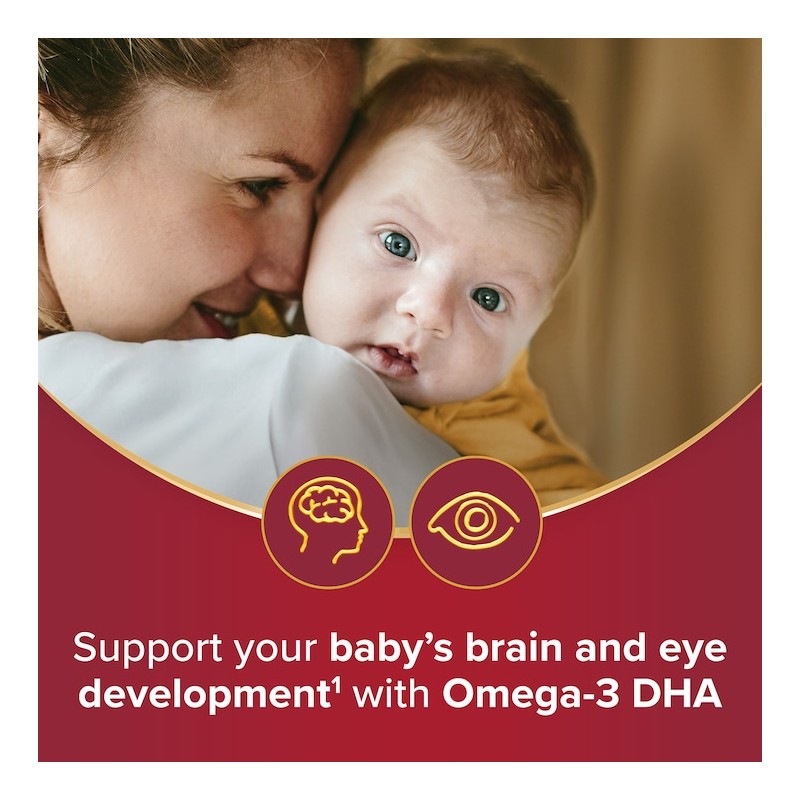 • OMEGA-3 DHA SUPPORTS YOUR BABY: Provides you with 200mg Omega-3 DHA to support the healthy development of your baby's brain and vision¹