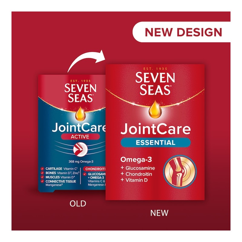 From the UK’s No. 1 Joint Care Brand* – Seven Seas JointCare Essential has been specifically formulated with Omega-3, Glucosamine and Chondroitin. Plus, Vitamins C and D, Zinc and Manganese to provide 4-in-1 JointCare Support1-4. It supports 4 important components of your joints: Bones1, Muscles2, Cartilage3, and Connective Tissue4. Like all the products in our JointCare range, Seven Seas JointCare Essential is formulated to help support an active lifestyle1-4. Our mission is to deliver the best products, sourced from the ocean, and manufactured to the highest standards. Our ‘Ocean Gold’ promise to you: • Over 85 years of Omega-3 scientific expertise. • Commitment to putting ‘you’ at the centre of everything we do. • No compromises. Seven Seas uses high quality ingredients.