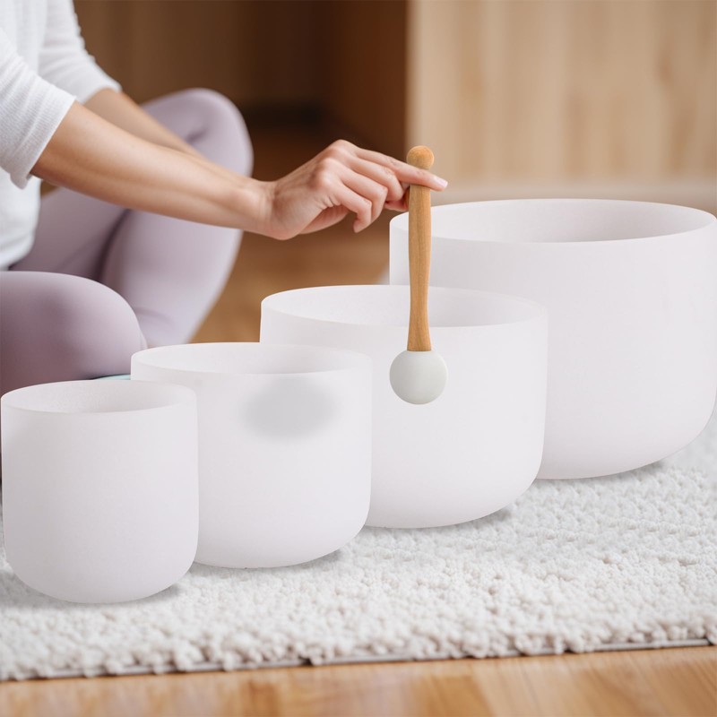 1. The Crystal Singing Bowl Set by Sevenbowls is meticulously crafted using 99% pure quartz crystal. It has undergone precise grinding and polishing to achieve a harmonious 432Hz pitch, reaching the perfect note B in the fourth octave for a sublime sound healing experience.