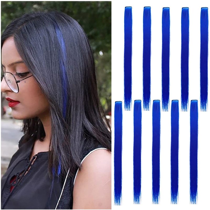 SEVENHEAD Hair Extension Clips 10pcs in Deep Blue 20 Inch Straight Hair Synthetic Fiber Hairpieces for Party