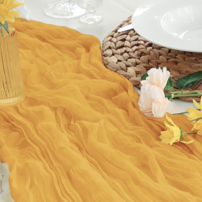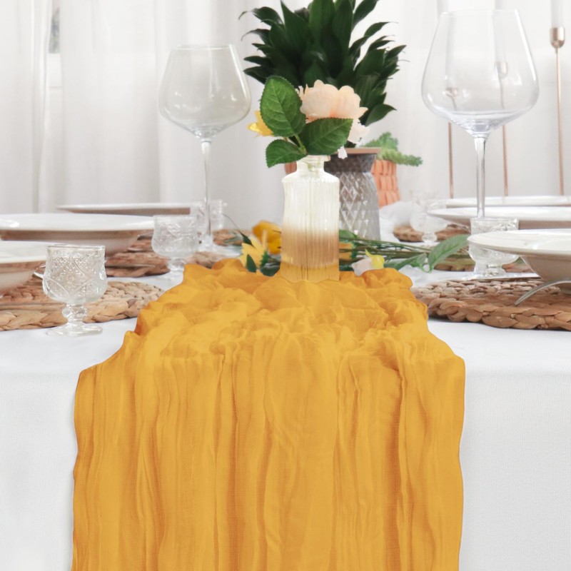 Sevenpers Cheesecloth Table Runner Gold 35"x120" Gauze Rustic Fabric Boho Yellow Table Runner for Wedding Bridal Baby Shower Birthday Festive Home Party Table Decorations 90x300 cm