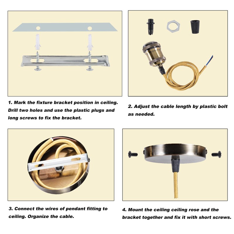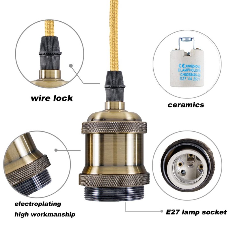 • 【Ceiling Pendant Light Fitting】Fit for E27 screw bulbs, max voltage: 250V,max wattage:60-watt, lamp socket diameter:4cm. 5 colors(chrome,bronze,antique brass,black,rose gold) for your choice.
