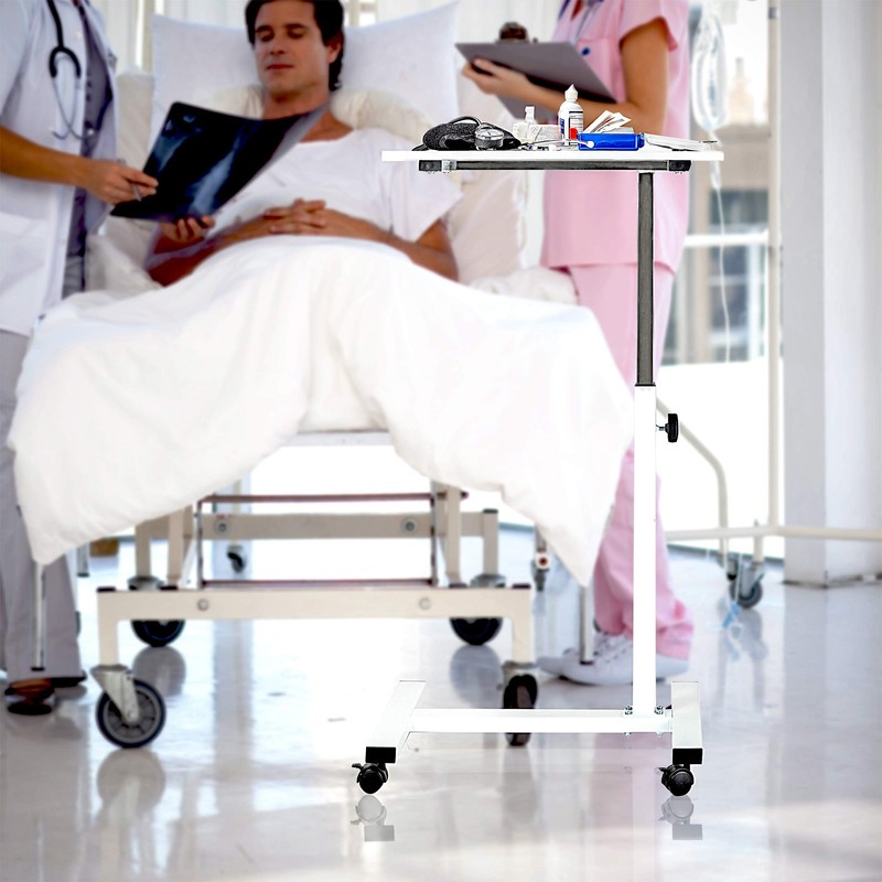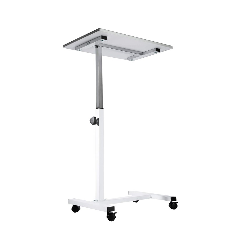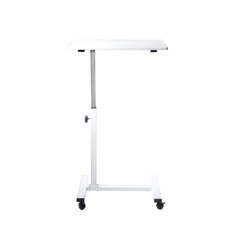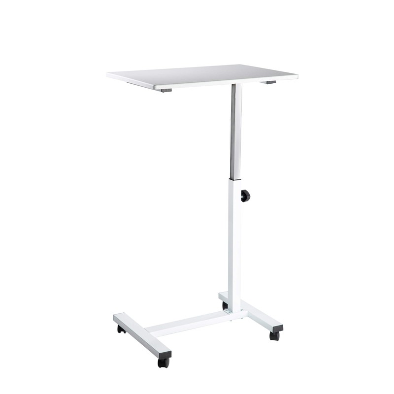 Seville Classics Solid-Top Height Adjustable Mobile Laptop Computer Desk Cart Ergonomic Home Office Stand Rolling Table, Overbed (23.6"), White