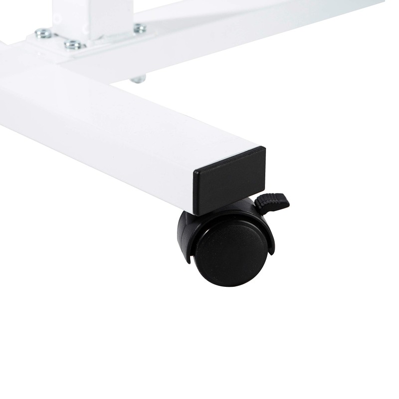 Stay comfortable while you work - or play - with the airLIFT Overbed Height Adjustable Mobile Side Table Cart. Enjoy the benefits of a smooth-rolling mobile desk designed for use near furniture such as beds, couches, and recliners. The table features a large top finished in a woodgrain laminate for easy cleaning, as well as durability. Adjust the height of the top from 27.5" to 43.3" high and secure with a simple twist of the lock knob. It's a perfect mobile desk for living rooms and bedrooms with an off-center cylinder and low- profile base. Use it while sitting in bed, or even as a TV tray in the living room. Smooth-gliding 1.5" diameter casters make it easy to roll over hard floors, carpets and rugs. Two locking casters ensure the desk stays put when you need it!