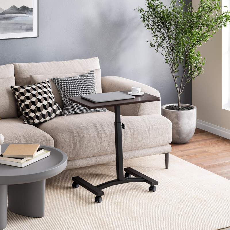 Seville Classics WEB162 Mobile Laptop Computer Desk Cart Height-Adjustable from 20.5" to 33", Slim, Walnut