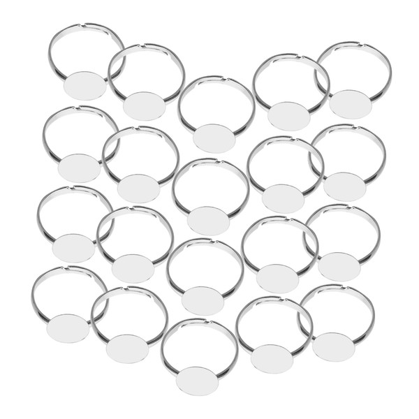 SEWACC 20pcs Adjustable Blank Ring Supports for Jewelry Making Metal Round Pad Ring Settings for DIY Crafts Flexible Sizing for Creative Possibilities and More