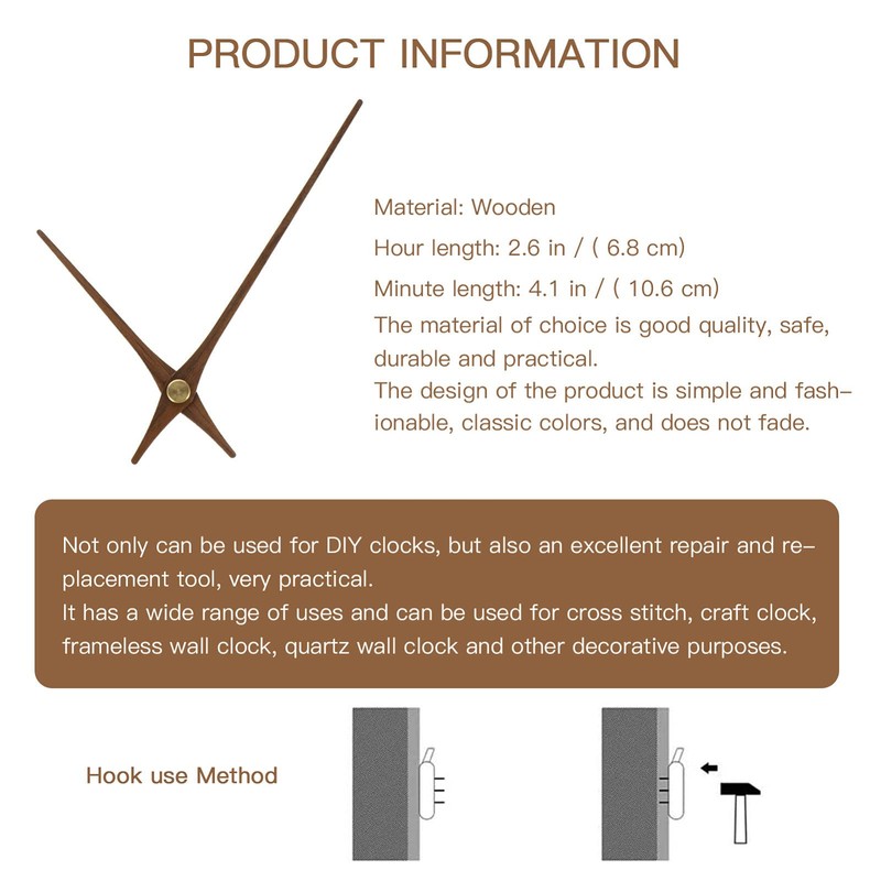 - These clock hands are made of quality walnut wood, which has nice wear- resistant and scratch- resistant,