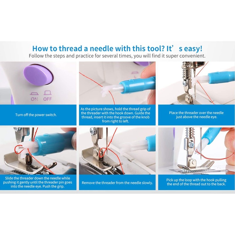 Sewing machine needle threader are made of premium plastic and metal, durable and reusable for threading while sewing.
