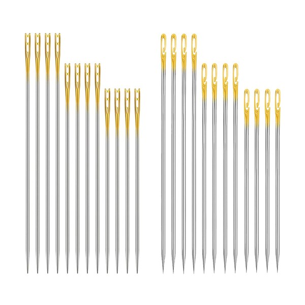 - 【High Quality】Made of high quality stainless steel with gold eyelets to make threading easier. They are rust-proof, sturdy and durable, can be used repeatedly, multi-size needles are neatly organized, safe and reliable, easy to store and carry.