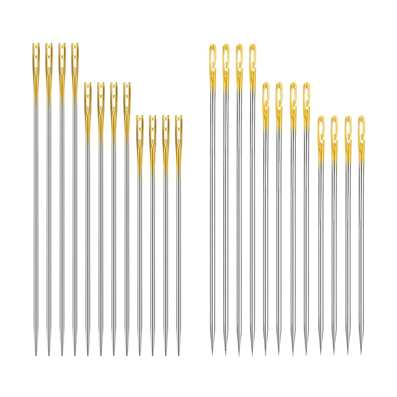 - 【Delicate design】The tip of the needle is very small, the resistance to threading the cloth is small, and it is easier to slip through. The gold design at the end makes it easy to find the hole for threading, which makes threading easier and faster, and is helpful for the elderly or people with poor eyesight.