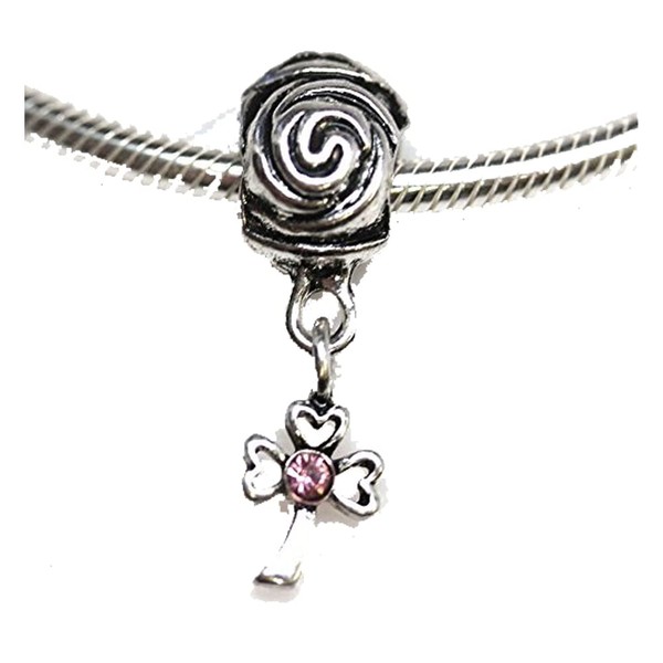 - Cross Charm with Pink Rhinestone Charm Bead Compatible For Most European Snake Chain Bracelets