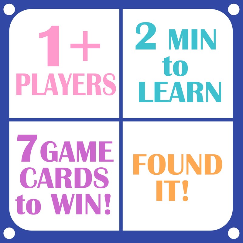- Players draw a card and race to find the listed object in their surroundings. The first to find the item and shout “Found It!” wins the round.