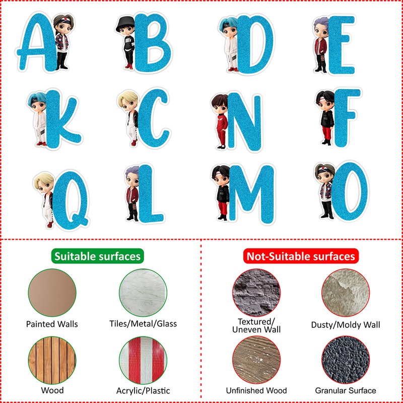 ⭐Learn ABC in an interesting way, teach through vivid pictures. ABC wall decals with colourful design to brighten up your toddler’s playroom. 💖 ⭐Reliable material: the alphabet wall decals for classroom are made of quality GSM mirror coated sheet, which is reliable, the patterns and colours are clear and colour fast. 💖 ⭐ADD COLOURS WITHOUT PAINTING: decorate your room instantly. Bring colour and life into your room without the hassle of painting and cleaning. 💖⭐we provide glue dots so that it adheres Straight to The Wall, Door, Mirror or Any Surface and can be arbitrarily placed on somewhere you like, should be applied to smooth, clean and dry surface of walls, windows, mirrors, tiles, glass for long time use. 💖⭐Size as shown in the image. 💖This Wall Stickers Is Made at Art board gsm 260 You need to attach the Glue Drops to the Wall sticker to Stick on the wall