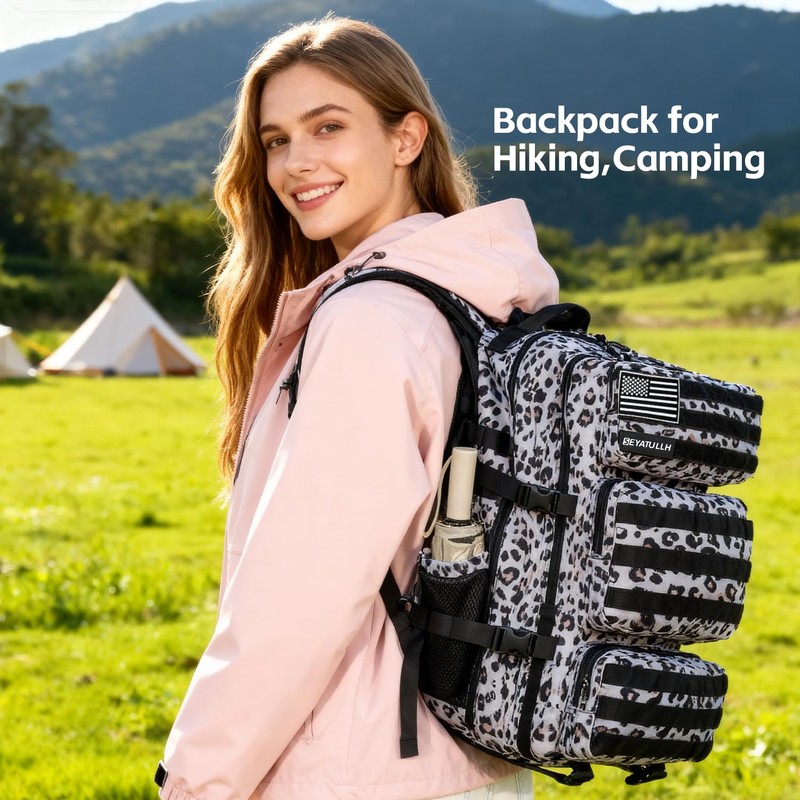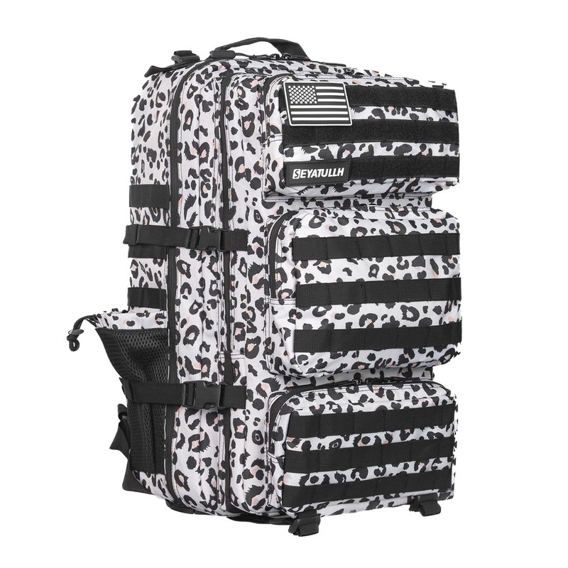 SEYATULLH Military Tactical Backpack 55L for Men & Women Bug Out Bag Assault pack Molle Daypack Hiking Trekking Rucksack (Leopard print color)