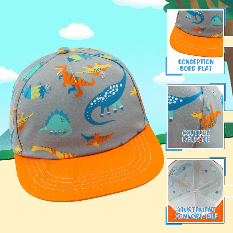SEYUFN Children's Baseball Cap Baby Girls Boys Cap Baseball Cap with Flat Brim for Children Boys Sports Hat with Cartoon Pattern Girls, N-grey-orange-dinosaur