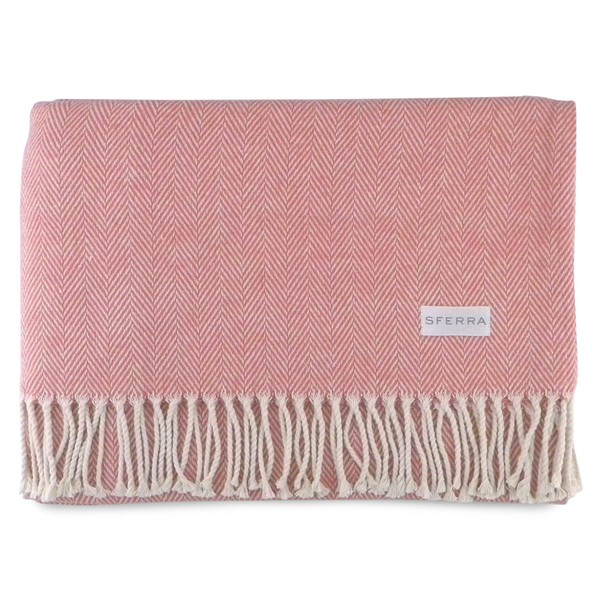 Sferra Celine Herringbone, 100% Cotton Throw Blanket - Salmon