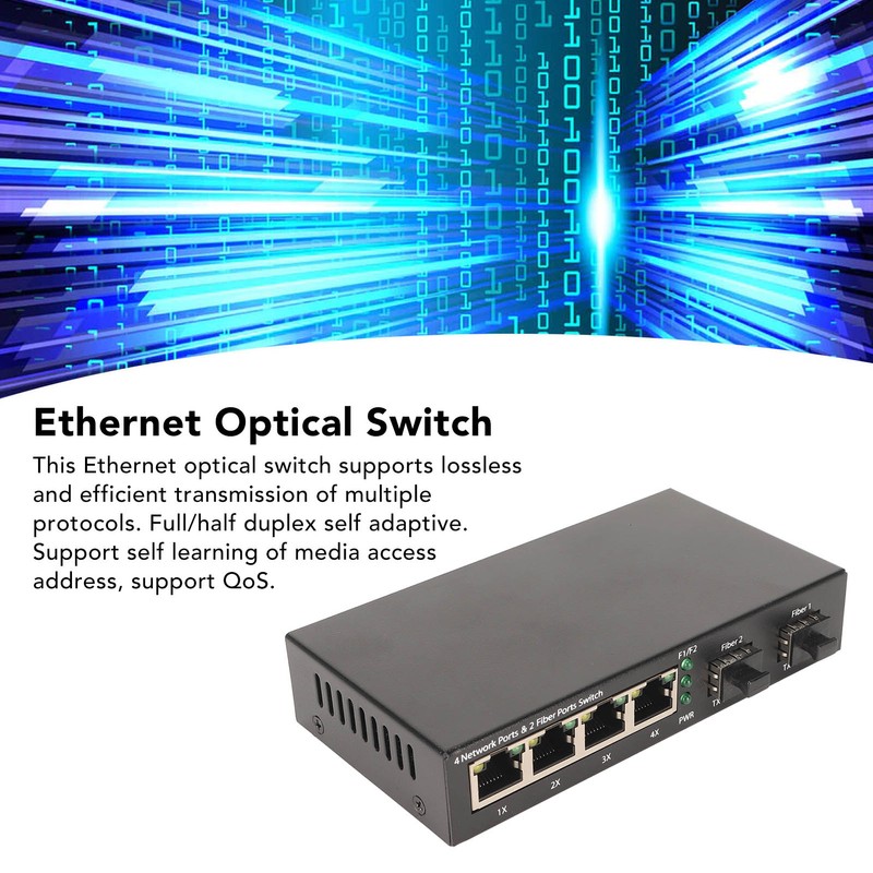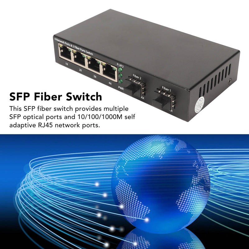 SFP Fiber Switch 6 Ports 10 100 1000M Self Adaptive LED Indicator Ethernet Optical Switch for Office Network 100‑240V EU Plug