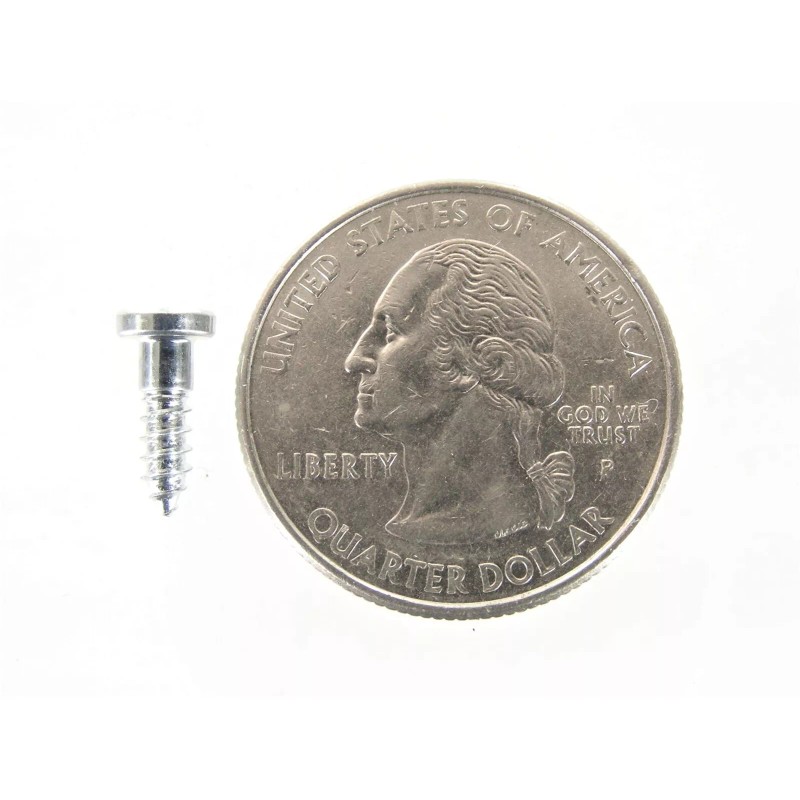 Studs: #4 x 3/8" Phillips studs. 7/32" head diameter. 1/8" shoulder diameter. 3/32" shoulder length. Silver zinc finish.