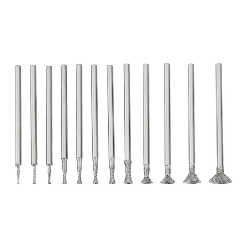 SG Store 12-Piece 3/32 Inch Bowl Diamond Cutter Set in Bowl Shape with Mounted Grinding Bits for Grinding and Carving Feldstein Ceramic Rotary Tool (0.5 mm - 8 mm)