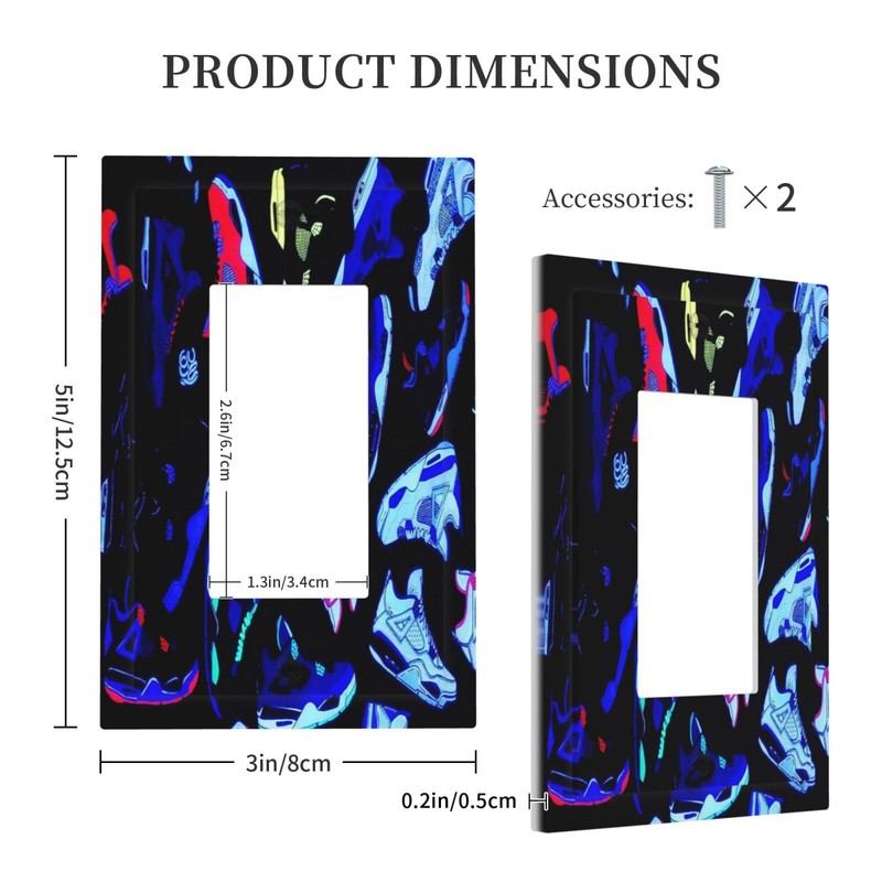 Sghxwp Decorative Outlet Covers Retro Basketball Sport Blacklight Fire Red IV Sneaker 1 Gang Single Decora GFCI Device Light Switch Cover Plate 1 Rocker Wall Plate Jumbo Switch Plate Cover