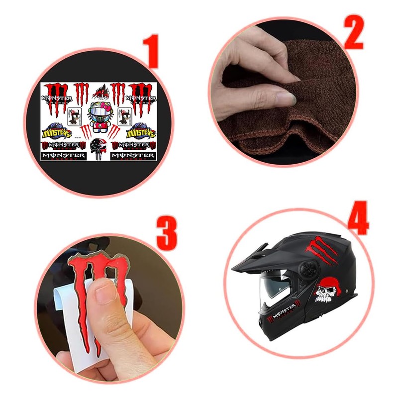 SGQTGIMU SGQTGIMU Reflektierender Helm Aufkleber Motorrad mit Niedlicher Katze, Monster Sticker Set wasserdicht fr Motorradaufkleber, Helm, Auto-Hochwertige Motorrad Sticker in Rot