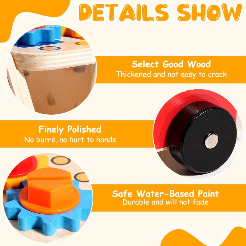 2. This children's tool set promotes motor skills, trains practical skills and improves fine motor skills. High quality Montessori toy is suitable for boys and girls aged 2 and over.