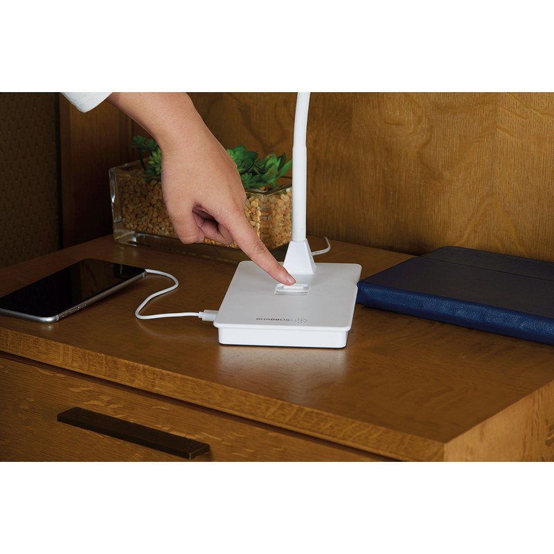 SHABBOSLITE Table Lamp is perfect for use while Reading in Your Bedroom, Guestroom, Studying at a Table, Lighting up a Child's Room, Soft Backlighing in the Nursery, Illuminating your Vanity Area, or for use while traveling and staying at a hotel on Shabbos. SHABBOSLITE includes a USB Charging Port to charge your phone or tablet on Shabbos. The Crisp White LED Light is easy on the eyes. The Adjustable Gooseneck feature allows you to adjust the light to where you want it and the E-Z SLIDE? SHUTTER simulates turning "off" or "dimming" the light and allows for Halachic "control" of the light". SHABBOSLITE - where Lighting Technology, User Friendly Design and Halachic Approval merge. Approved for Use on Shabbos by Rav Levi Yitzchak Halperin of the Institute for Science and Halacha in Bayit Vegan Jerusalem and by Rav Tzvi Ortner of Halachic Tech USA of Boro Park/Brooklyn New York. SHABBOSLITE is a must have product for enhancing your Oneg Shabbos and makes an ideal gift for Engagements, Housewarming, Guest Visits, Graduation, Bar-Bat Mitzvah, Friends and Family. Buy one for every bedroom!