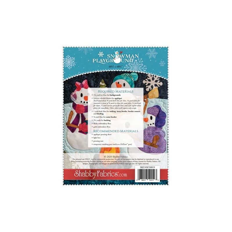 - Full color step-by-step Pattern with all needed diagrams for Snowman Playground quilt.