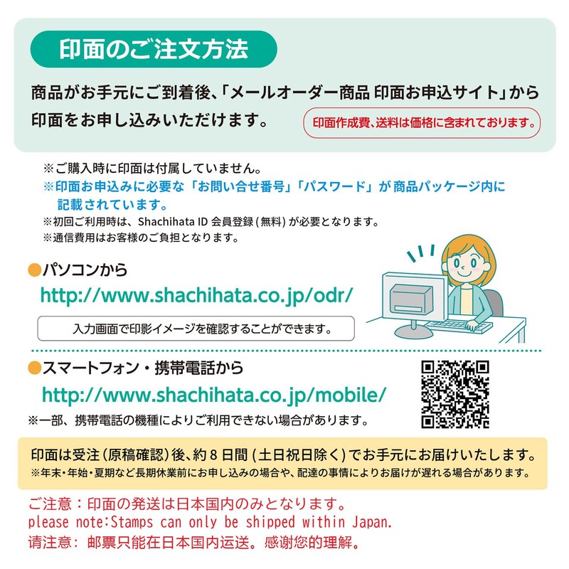- [Imprinting] Mail-order form: After the product arrives, you will access the "Mail-order product" from your smartphone or computer and apply to create the stamp area