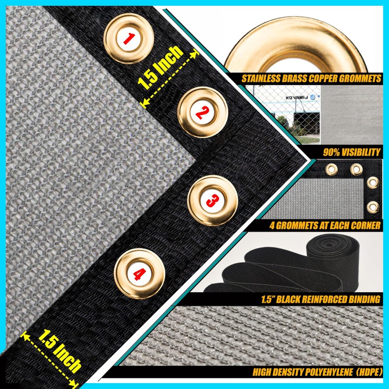 - Easy To Install: Fencing mesh comes with the extra stainless grommets and reinforced binding, grommets are made of stainless copper, each corner has 4 grommets (compares to similar products on the market only have 1-3 grommets). all edges are covered with black reinforced 3-inch binding (1.5-inch on each side). easy to fix the fence screen in place by included zip ties. compatible with wire fence, wooden palisade, chain link fence, railings and huddles