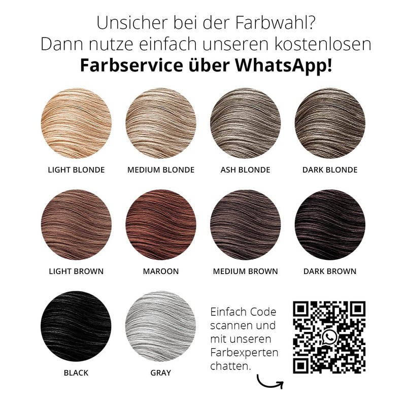 - Immer die passende Farbe: Unser Streuhaar ist in 10 Farbt?nen erh?ltlich, von dunkel ber hell bis hin zu Sondert?nen. Unsere Blondt?ne haben wir speziell fr den Europ?ischen Markt entwickelt und bieten somit eine gro?e Auswahl, bei der niemand leer ausgeht.