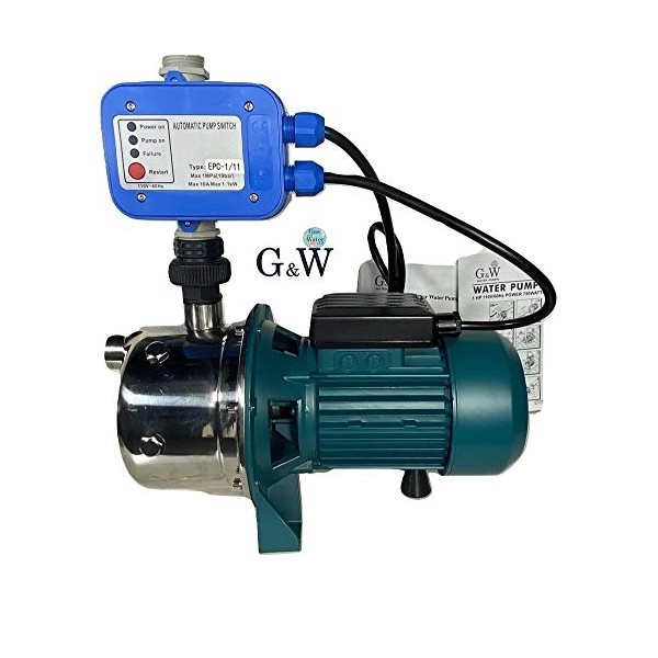 Shallow Well Jet and Booster Pump with Smart Controller Home Pressure 1 HP 110 V G&W Tankless No Need for Pressure Tank Max.Flow:13GPM Max.Height:137ft.
