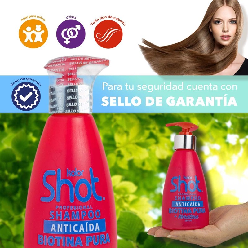 Shampoo Anticaída Biotina pura más Keratina Fortalece el Cabello Evitando el Quiebre y Disminuye la Caída, proporciona una Apariencia Suave y Brillante 250ml.