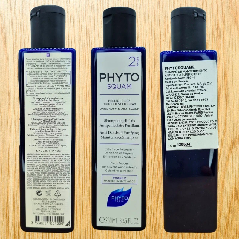 - irritantes que disminuye la secreción de sebo y calma el cuero cabelludo. Enriquecido con activos vegetales sublimadores, PHYTOSQUAM garantiza luminosidad y ligereza al cabello. Testado bajo control dermatológico. El complejo anticaspa titulado (pimienta negra + madera de Guayana) es 100% de origen natural y vegetal. Único, combina belleza del cabello y eficacia anticaspa demostrada. El extracto de sófora japónica repara y refuerza la barrera cutánea para prevenir las recidivas. Enriquecido con extracto de tamarino y con extracción de consuelda. Beneficios: