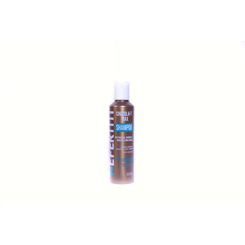 ¡Recupera el brillo y suavidad de tu cabello! Shampoo Chocola-T Max de Nefertiti con efecto Anti - Edad reestructura y regenera la fibra capilar. Contiene Queratina, Extracto de Cacao y Bambú que hidrata el cabello maltratado, sobreprocesado o sin elasticidad dejándolo suave y con brillo. Botella de 300 ml.
