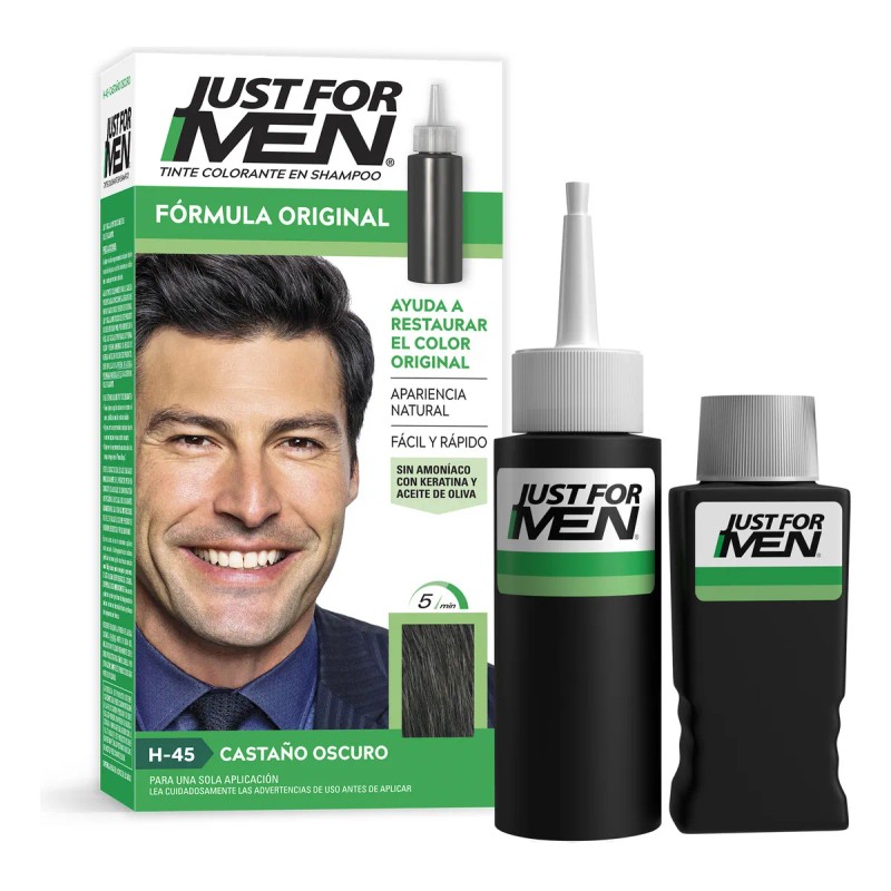 Shampoo con Tinte Just for Men Fórmula Original Larga Duración Castaño Oscuro H45 66ml