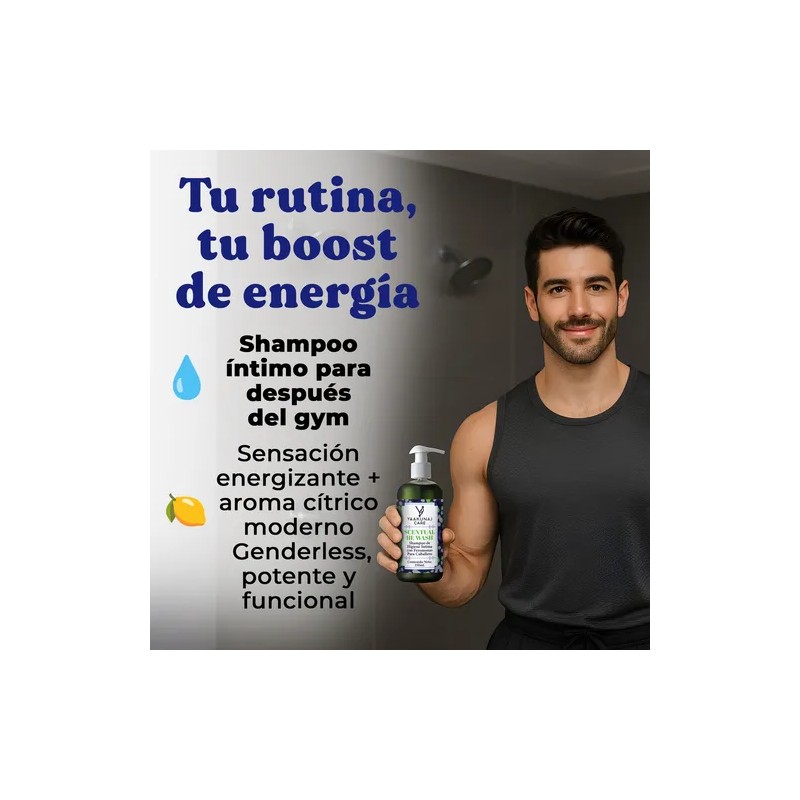 Lauril Glucósido + Coco Betaina: surfactantes suaves que eliminan impurezas sin irritar ni resecar la zona íntima. Respetan el pH natural de la piel masculina.