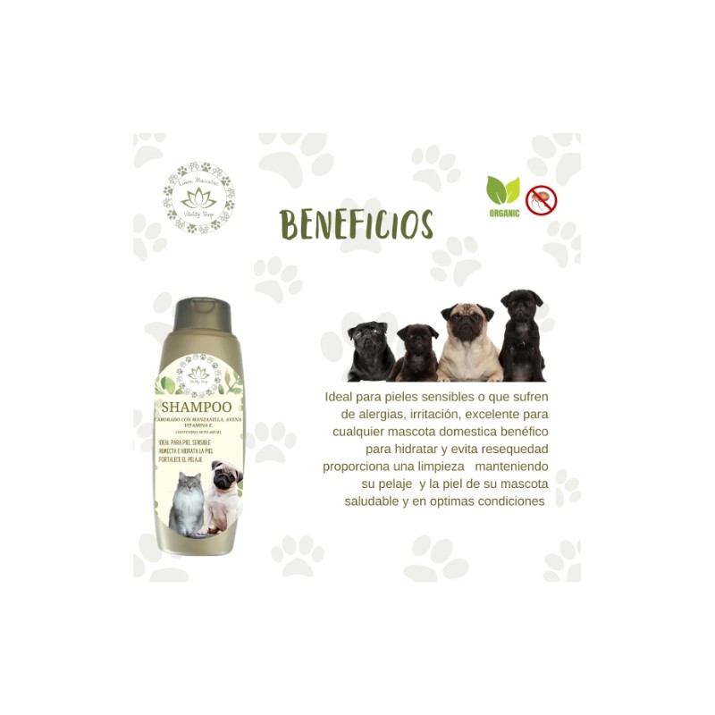Shampoo Orgánico Para Mascotas Perro Gato Piel Sensible
