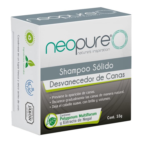 - Shampoo Sólido desvanecedor de canas neopure Previene la aparición de canas con productos 100% naturales. Usar por lo menos 3 veces por semana para mejores resultados.