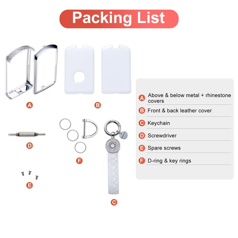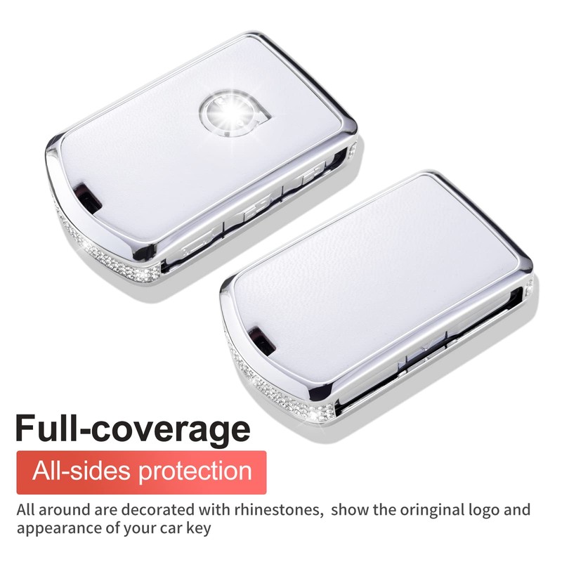 - 【Material】: Made with premium aluminum alloy with leather and crystals. Make your key fob look new and premium.
