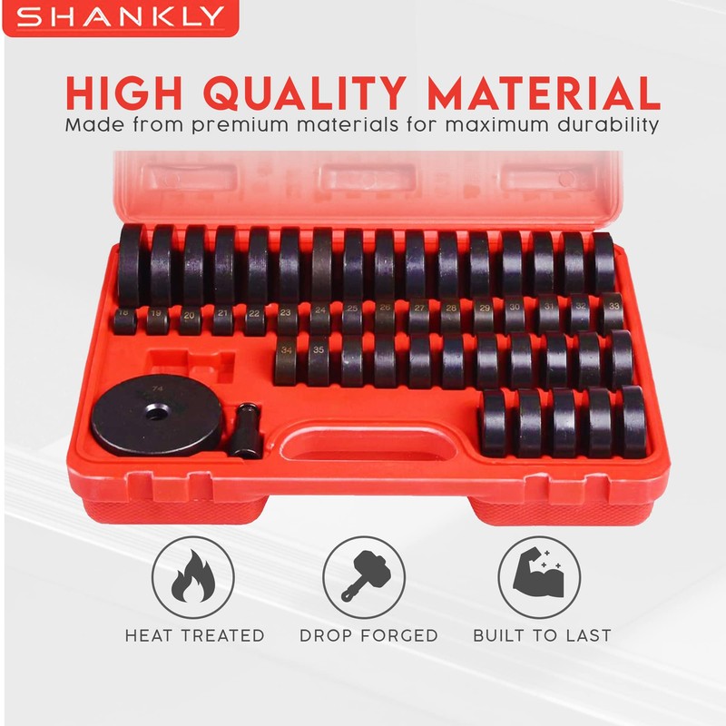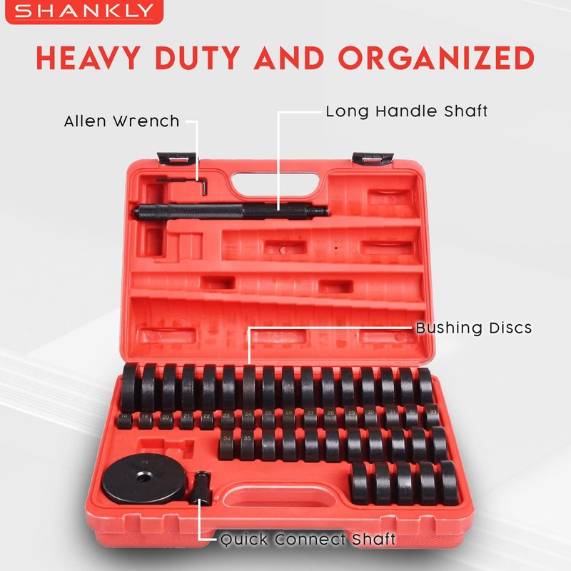 Shankly Bushing Removal Tool, Bushing Driver Set or Bushing Press Kit, 50 Piece Seal Drive Set or Interchangeable Discs for Bushing Tools Includes a Heavy-Duty Handy Case