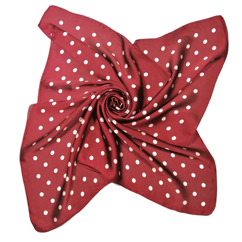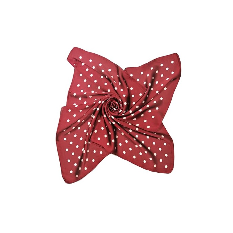 Shanlin Silk Feel Solid Color Square Scarves 27" X 27”(Red Polka Dots)