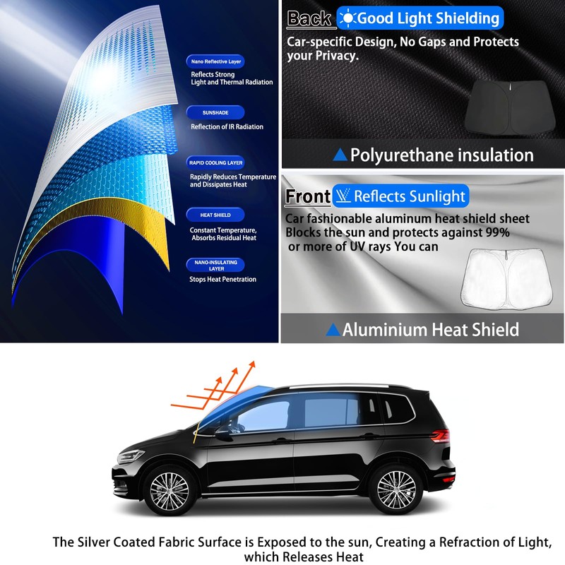 SHAOHAO SHAOHAO Kompatibel mit VW touran L MK2 5T 2016-2023 Sonnenblende Faltbare Sonnenblende UV- und Hitzeschutz Sonnenblende Windschutzscheibe VW touran zubeh?r