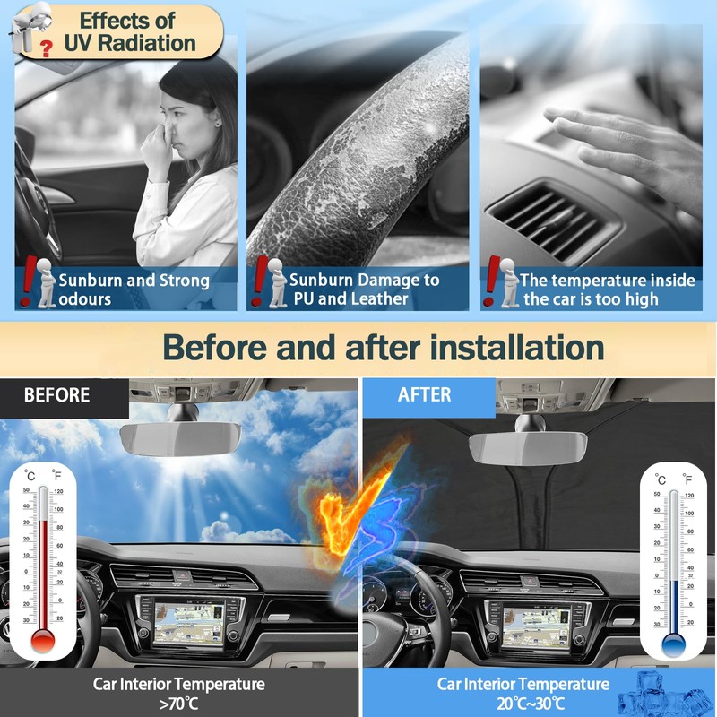 - Reduziert die Innentemperatur:H?lt den Innenraum Ihres Autos jederzeit khl vor der sengenden Hitze an hei?en Sommertagen