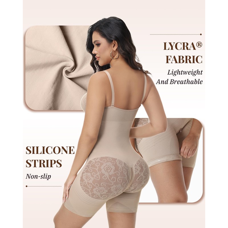 - LYCRA FABRIC:Our shapewear redefines lightweight and compression with premium Lycra fabric. Made from 82% nylon and 18% spandex, its 30% lighter than traditional shapewear, yet provides double the shaping, with a seamless, lightweight design that hugs the body perfectly and redefines the superior ability to naturally contour. Advanced cutting techniques and moisture-wicking fabrics provide seamless support and breathability while shaping.