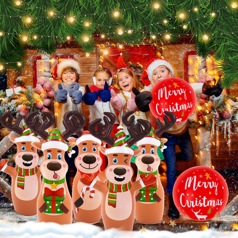 Shappy 12 Pcs 28 Inch Giant Christmas Inflatable Bowling Game Set Christmas Game Giant Inflatable Bowling Set for Kids Christmas Family Party Carnival Games Indoor Outdoor Activities (Elk)