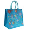 Shared Earth Jute Shopping Bag with Floral Print, 30 x 30 x 20 cm, Blue