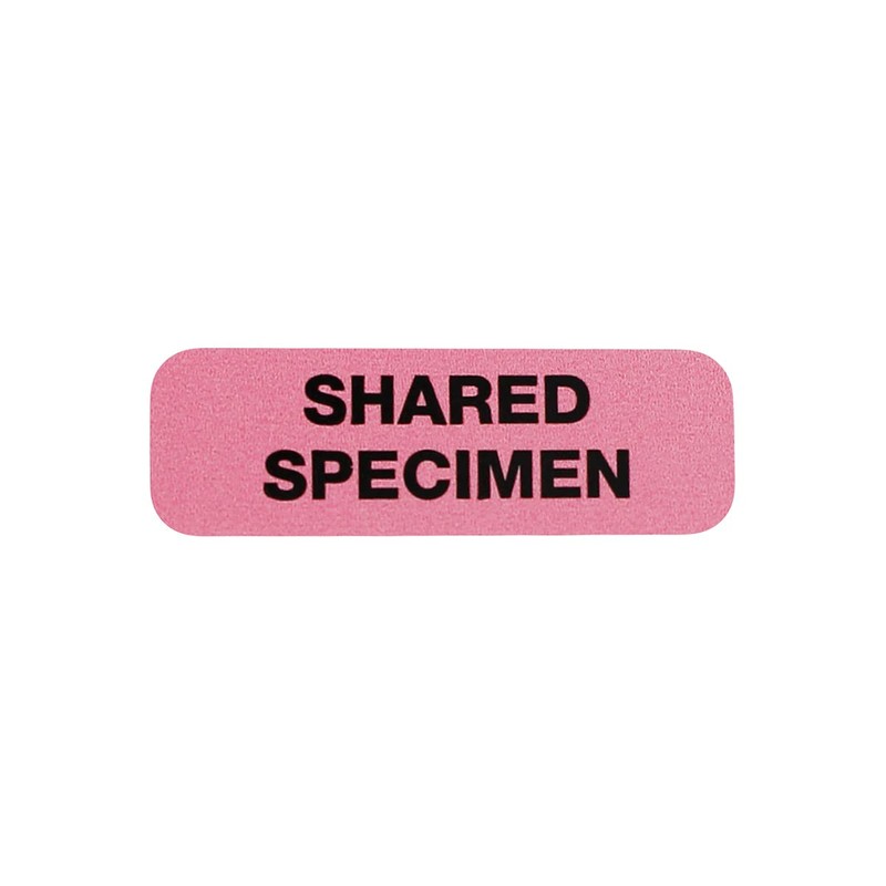 In the medical field, it is vital to stay organized. These shared specimen labels are the perfect way to do so. They are bright pink with a black font saying “shared specimen”. The bold lettering makes it easy to see what this label says on any surface.